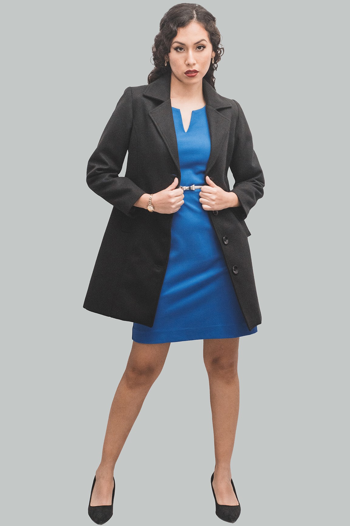 Vestido recto azulino elástico Johana es una versión del clásico vestido vintage de evento. Esta cargado de detalles considerados; cuello en V , corte recto, cierre invisible en la espalda. Un vestido perfecto para trabajar, evento cocktail o con tacones y accesorios para la noche.
